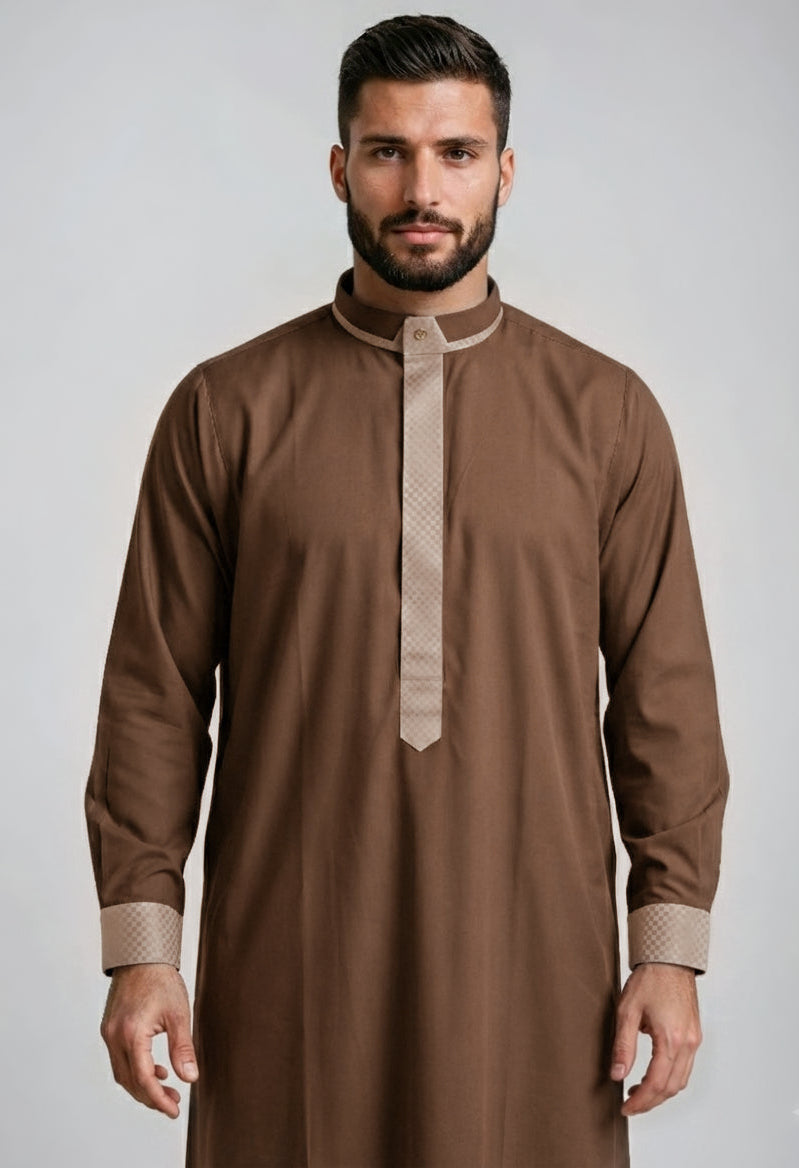 Elevate your wardrobe with this sophisticated men's thobe by Al Kiswah, crafted from breathable fabric that ensures comfort throughout the...