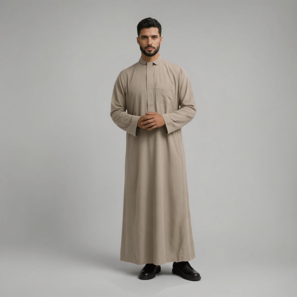 Stay comfortable all year round with Haramain Thobes. Crafted from non-shiny polyester, these Saudi-style garments are perfect for warm weather...
